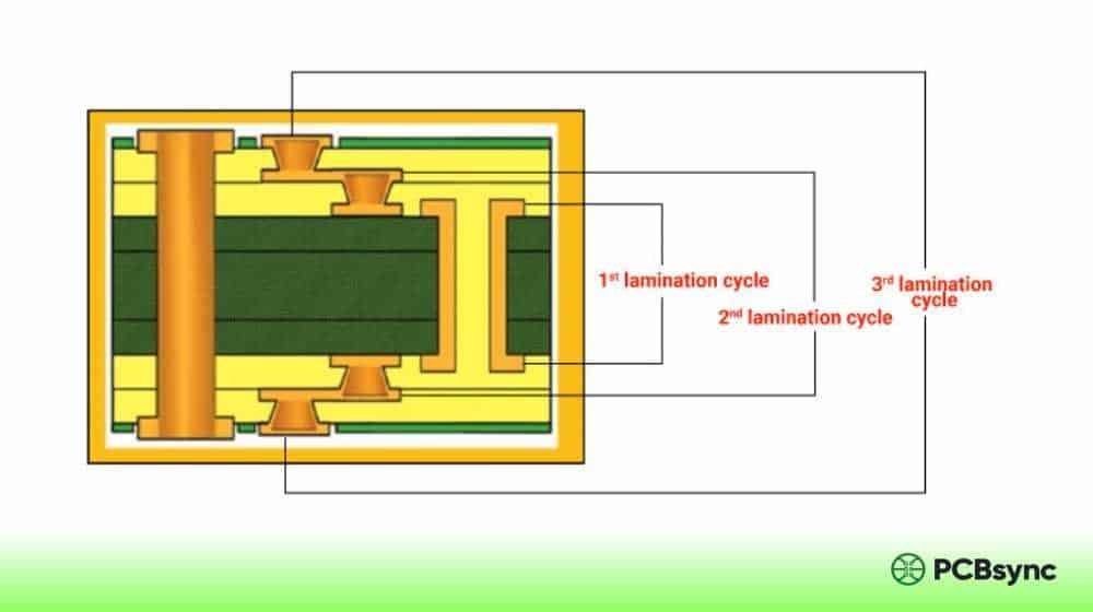 Plan your via structure with lamination in mind. Buried vias between layers 3-6 in an 8-layer board require different lamination sequencing than buried vias between 2-7. Work backward from your via requirements to determine the minimum lamination cycles needed.