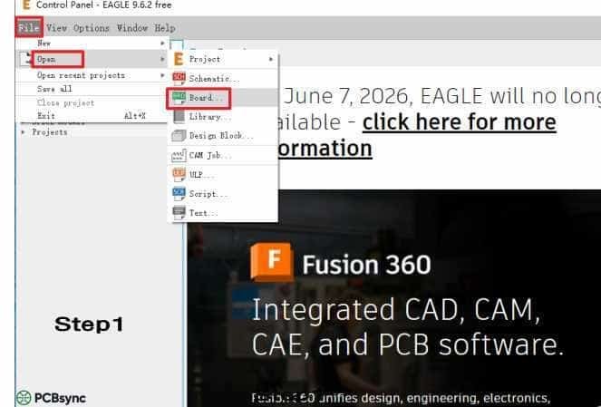 Launch Eagle’s Control Panel and navigate to File > Open > Board. Select the .brd file you wish to export. Your PCB layout will appear in the main editor window, displaying all design elements across their respective layers. Take a moment to visually inspect your design for any obvious issues before proceeding.